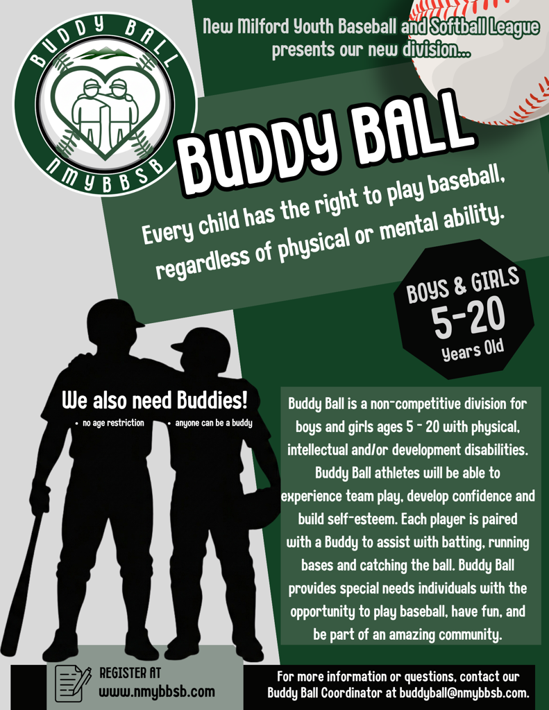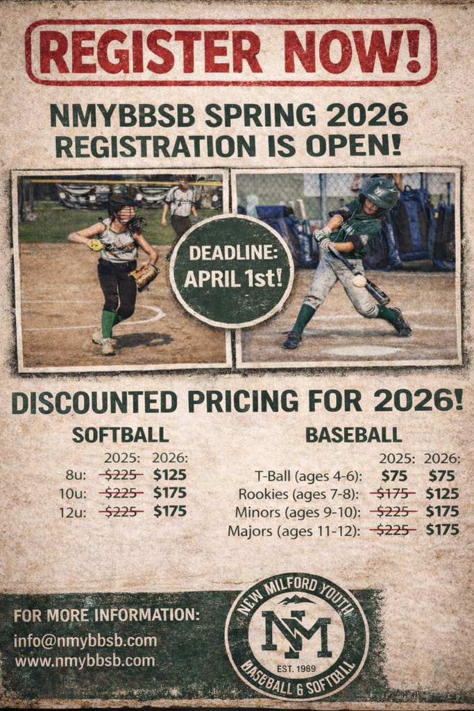 The New Milford Youth Baseball Softball (NMYBBSB) organization’s mission is to provide a high-quality youth baseball and softball experience focused on fun and fair play that, in turn, develops improved baseball and softball skills and an increased love of the game, all while providing an environment that embodies and celebrates sportsmanship and teamwork. NMYBBSB, a nonprofit organization, is wholly committed to providing our players the best athletic experience possible and the same quality program for all participants, regardless of ability and experience.